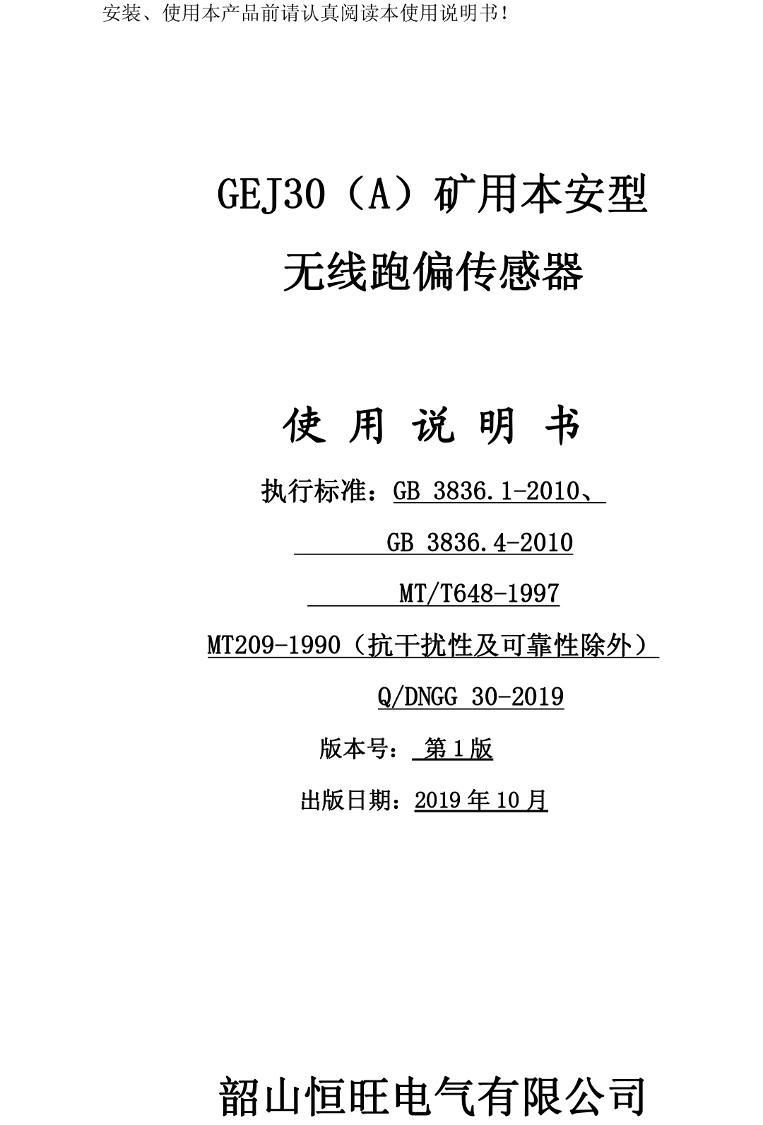 xiao12666@163.comGEJ30(A)礦用本安型無線跑偏傳感器說明書