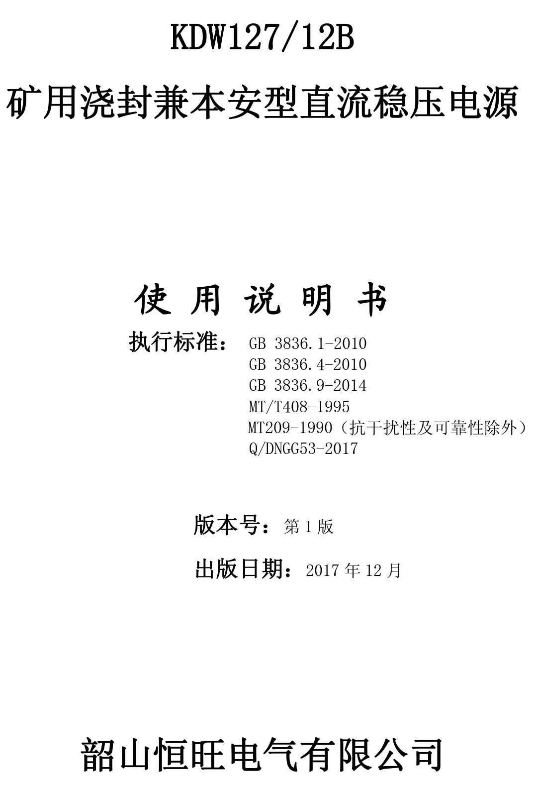 xiao12666@163.comKDW127/12B礦用澆封兼本安型直流穩(wěn)壓電源說明書