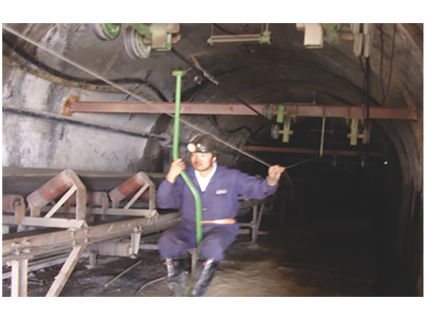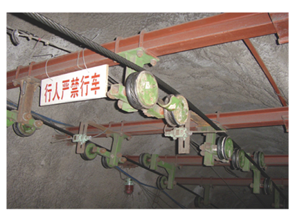 在架空乘人裝置運(yùn)行的沿途中,全巷道內(nèi)設(shè)置突發(fā)事件的緊急停車裝置,并分區(qū)段編號(hào)報(bào)警,以確保乘人安全。同時(shí)也可作為架空乘人裝置調(diào)試和檢修時(shí)的開停裝置。