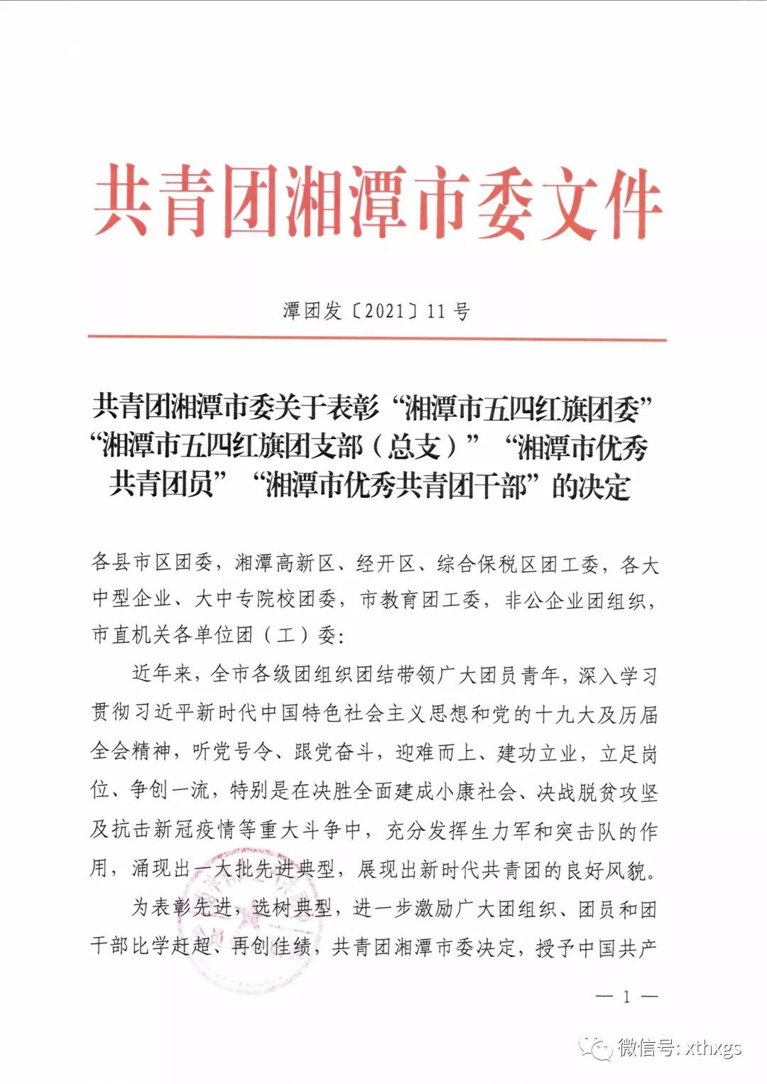 xiao12666@163.com【湘潭恒欣】喜獲湘潭市、韶山市"五四"榮譽(yù)