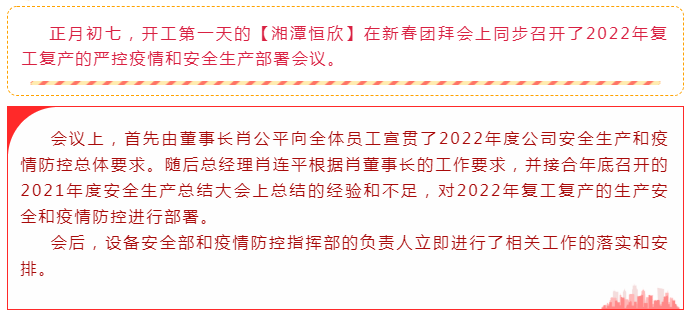 【湘潭恒欣】召開2022年復工復產(chǎn)嚴控疫情和安全生產(chǎn)部署會議