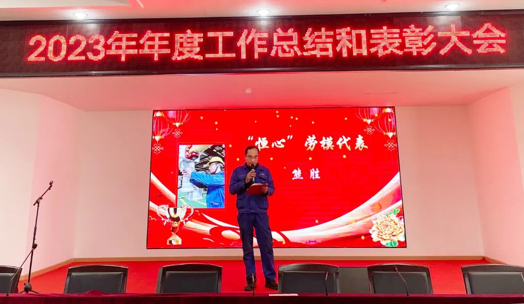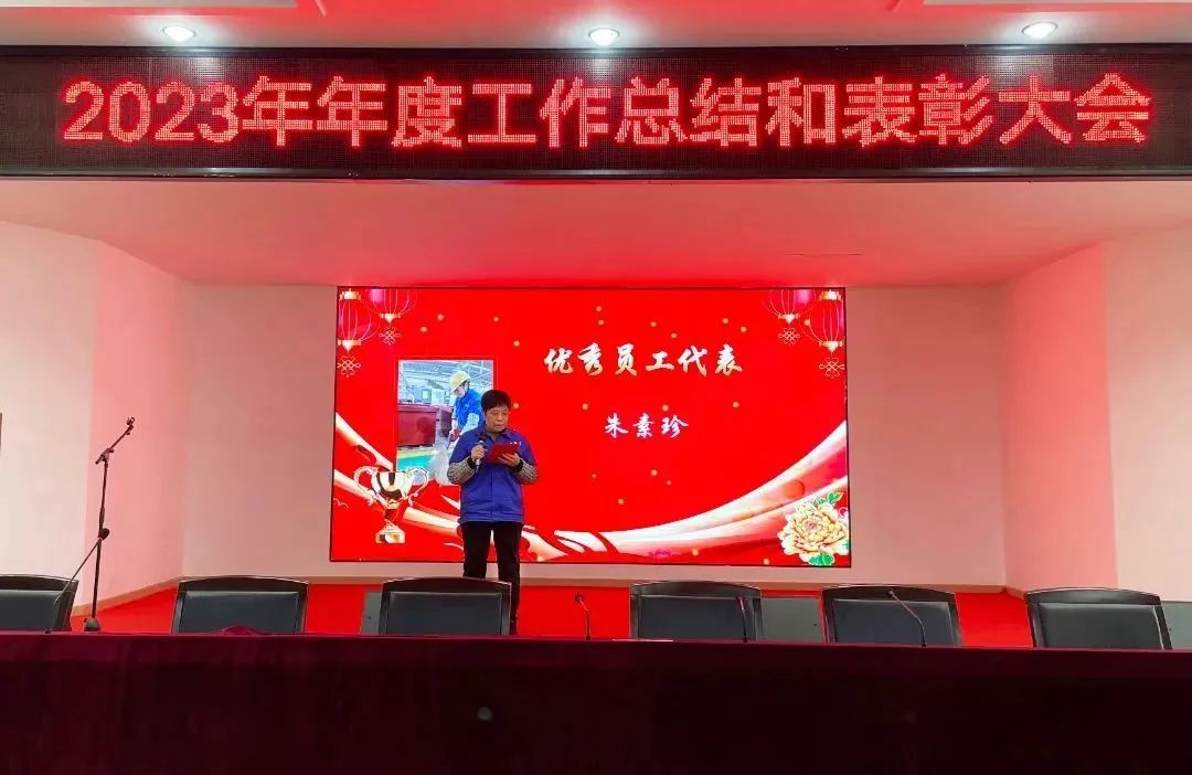 在表彰環(huán)節(jié),對2023年度的3個先進班組和57名優(yōu)秀員工、標兵和勞模分別進行了表彰,感謝他們在過去一年中勤勉工作、拼搏進取,為公司實現(xiàn)銷售訂單、營業(yè)收入、公司凈利潤等經(jīng)營指標的大幅增長,起到了表率作用和大的貢獻!同時,在表彰過程中,部分優(yōu)秀員工代表紛紛上臺感言,分享了各自敬業(yè)愛崗的工作情懷和職業(yè)操守,深深感恩【恒欣股份】給員工們打造的良好平臺,不僅給400多名員工的就業(yè)機會,而且讓全體員工的福利待遇年年增長!并表示將會繼續(xù)發(fā)揮先進表率作用,以更加飽滿的熱情投入到今后的工作中,為公司持續(xù)健康的高質(zhì)量發(fā)展作貢獻!