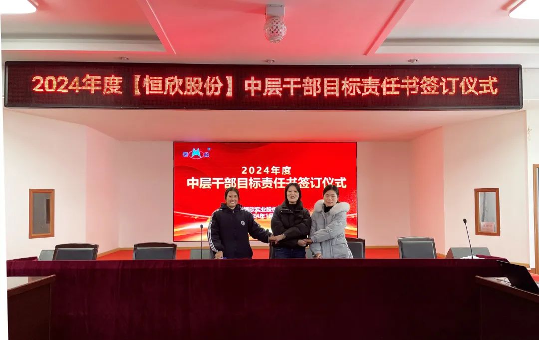 公司對(duì)《2024年度經(jīng)營目標(biāo)責(zé)任書》實(shí)行層級(jí)承包制,全面簽訂目標(biāo)責(zé)任書既是完成各項(xiàng)工作任務(wù)的“軍令狀”,也是恒欣人凝聚成一股繩,努力拼搏,敢于勇挑重?fù)?dān)的“承諾書”。