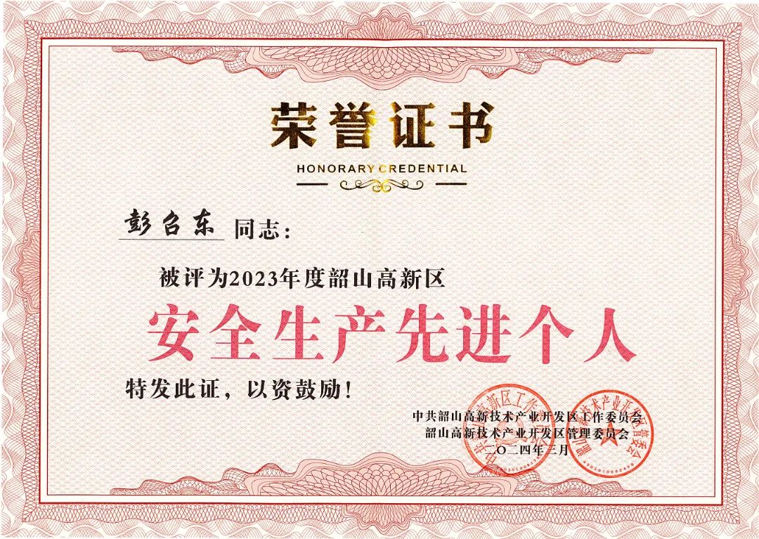 在會上的表彰環(huán)節(jié),【恒欣股份】分別被授予韶山市2023年度安全生產(chǎn)和消防工作優(yōu)秀企業(yè)和高新區(qū)2023年度“畝產(chǎn)論英雄”先進企業(yè),安全管理員彭召東和技術工程師范永鑫分別榮獲高新區(qū)安全生產(chǎn)先進個人和科技創(chuàng)新先進個人。