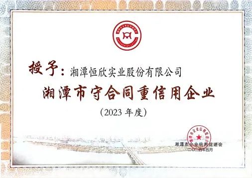 近期,【恒欣股份】先后被評為“2023年度湖南省守合同重信用企業(yè)”和“2023年度湘潭市守合同重信用企業(yè)”,【恒欣股份】已連續(xù)十一年獲得該榮譽,成為行業(yè)誠信經(jīng)營的典范。