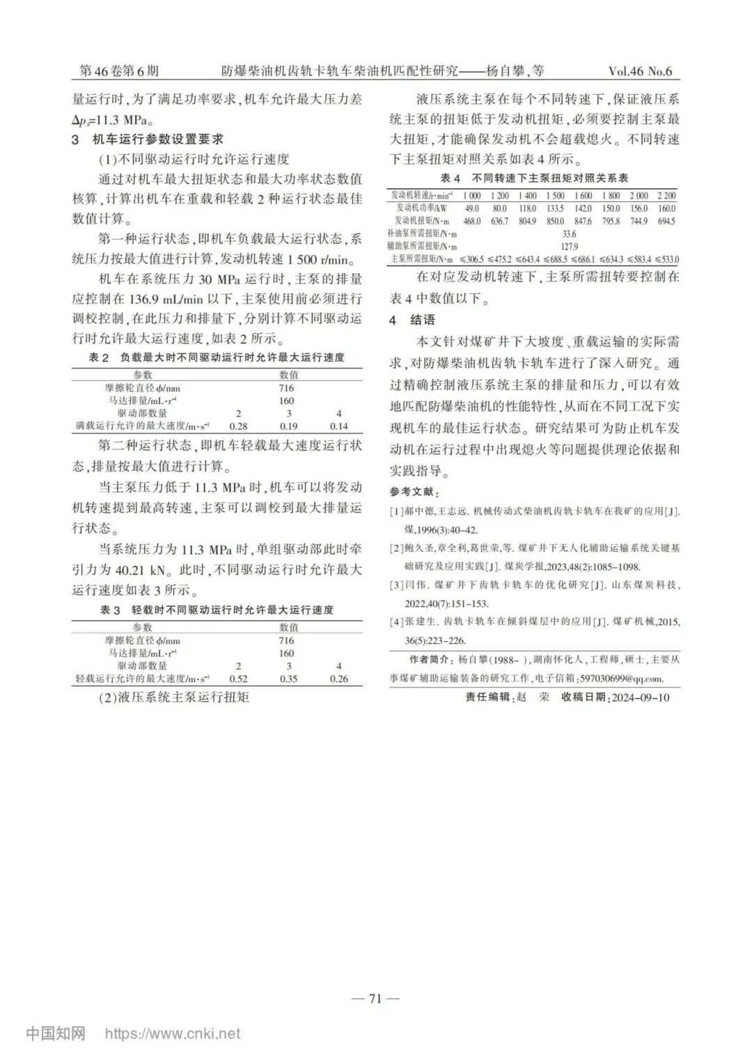 研究結(jié)果表明,通過控制不同機(jī)車型號的大負(fù)載運(yùn)行速度及主泵的最大扭矩,能夠有效避免機(jī)車在運(yùn)行過程中發(fā)生發(fā)動機(jī)熄火的情況。這項(xiàng)研究為防爆柴油機(jī)齒軌卡軌車的設(shè)計和應(yīng)用提供了理論依據(jù),同時為其在煤礦井下大坡度、重載運(yùn)輸中的實(shí)際應(yīng)用提供了技術(shù)支持和指導(dǎo)。
