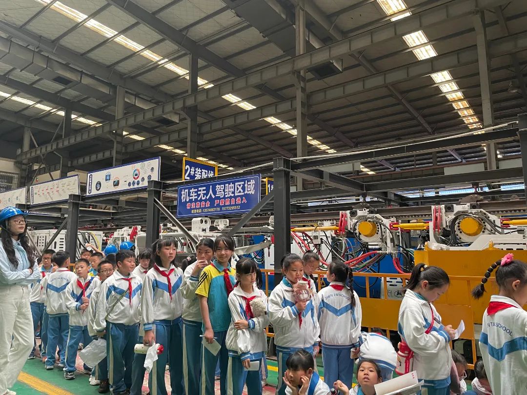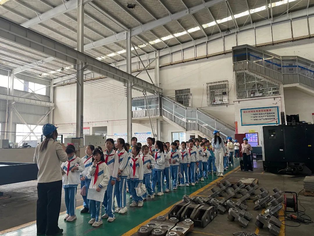 在段總監(jiān)的陪同下,師生們依次參觀了企業(yè)榮譽展廳、數(shù)控車間、焊接機器人作業(yè)區(qū)、單軌吊無人駕駛區(qū)及物聯(lián)網(wǎng)中心,段總監(jiān)全程耐心講解,讓孩子們近距離觀察核心產(chǎn)品的生產(chǎn)過程,在焊接機器人工作區(qū),智能機械臂的精準(zhǔn)焊接令孩子們驚嘆不已;在單軌吊實驗區(qū),工作人員現(xiàn)場演示無人駕駛技術(shù),讓孩子們直觀感受到科技的力量。