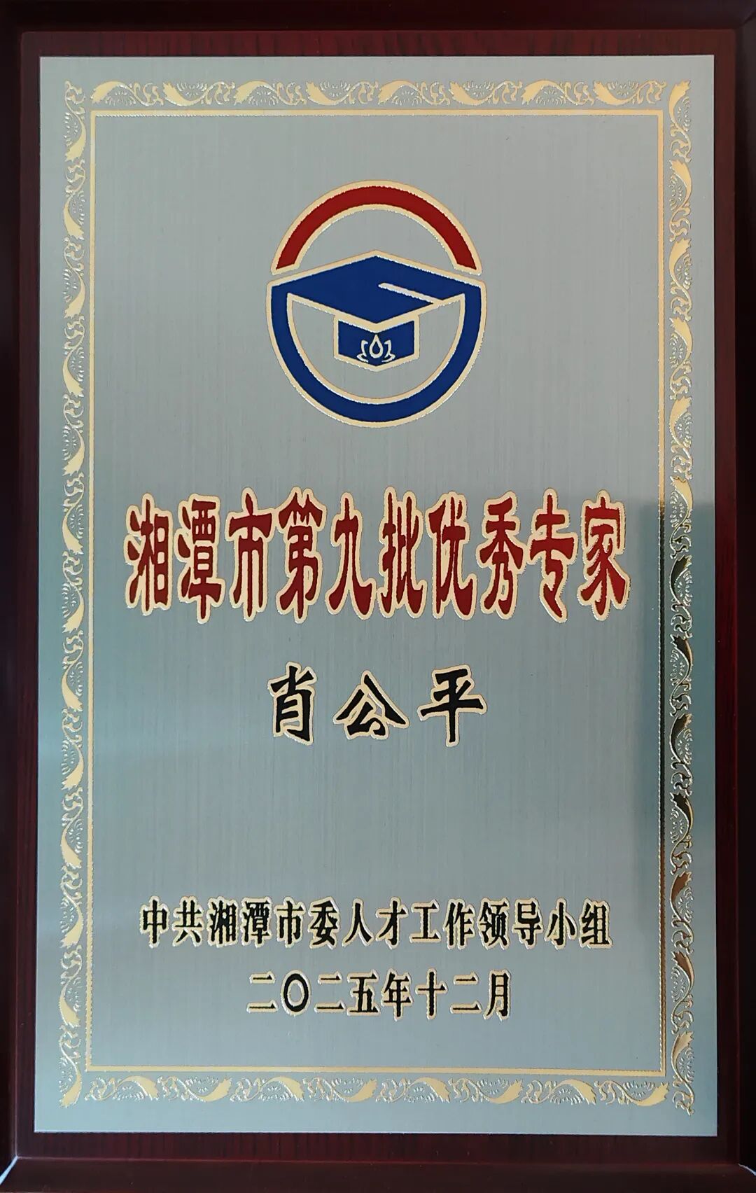 祝賀我司董事長、首席專家肖公平先生獲“湘潭市第九批優(yōu)秀專家”稱號。