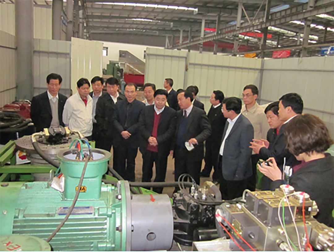 公司董事長肖公平先生陪同市長吳奇修來到的公司的液壓車間,看到了通過省科技廳的技術鑒定,結論為:填補國內空白,技術國際領先的第二代“猴車”——液壓驅動式架空乘人裝置。并參觀了電氣車間,講解了公司開發(fā)、生產(chǎn)、銷售的防爆電氣產(chǎn)品。