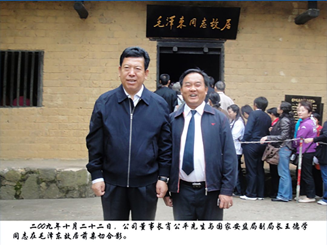 二00九年十月二十二日,公司董事長(zhǎng)肖公平先生與國家安監(jiān)局副局長(zhǎng)王德學(xué)先生在主席故居前親切合影。