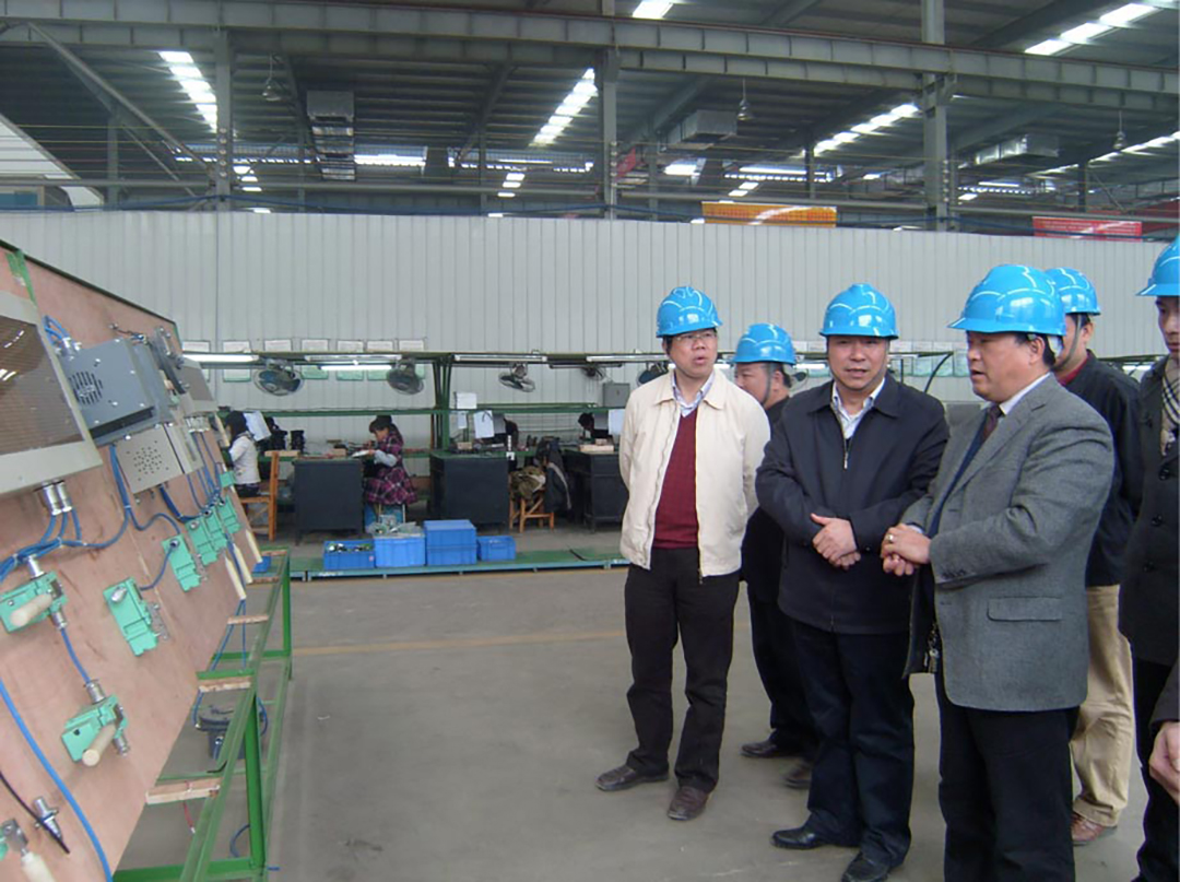 公司董事長肖公平先生陪同湖南省安監(jiān)局副局長朱崇洲先生一同視察防爆電氣產(chǎn)品生產(chǎn)車間。