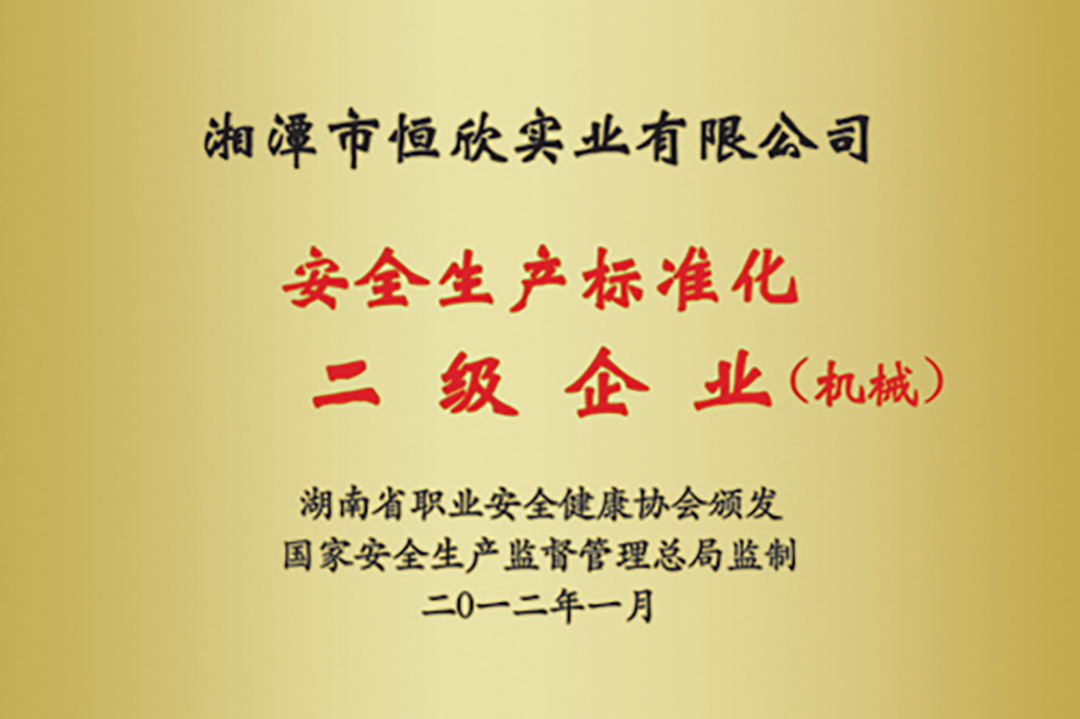 熱烈慶祝“湘潭恒欣”被評為湖南省安全生產標準化二級達標企業(yè)