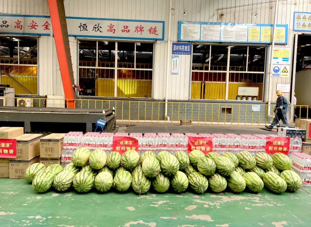 盛夏時(shí)節(jié),烈日炎炎。市委書(shū)記曹偉宏一行,在【恒欣股份】董事長(zhǎng)肖公平的陪同下,來(lái)到車(chē)間為奮戰(zhàn)在高溫一線的員工送去了解暑降溫物品——防暑藥品、西瓜、礦泉水等,不僅傳遞了政府對(duì)高溫一線員工的關(guān)心,也向一線員工不畏酷熱、堅(jiān)守崗位的精神表達(dá)了敬意。