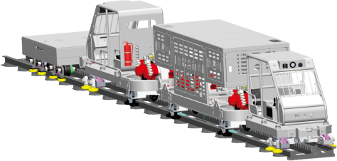機(jī)車的動(dòng)力單元,為每個(gè)驅(qū)動(dòng)部提液壓油。主要包括防爆柴油機(jī)系統(tǒng)、液壓控制系統(tǒng)、電氣控制系統(tǒng)、自動(dòng)滅火系統(tǒng)等。