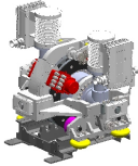 主要 由變頻調(diào)速一體機(jī) 、行星減速機(jī) 、工作制動(dòng)器(配備減速機(jī)內(nèi)置濕式制動(dòng)器及作用在驅(qū)動(dòng)輪 的盤式制動(dòng)器)、驅(qū)動(dòng)輪 、編碼器測(cè)速裝置 、離心限速裝置 、驅(qū)動(dòng)支架 、車輪擺架 、卡軌輪 、導(dǎo)向輪等組成 , 單個(gè)驅(qū) 動(dòng) 單 元 的驅(qū) 動(dòng) 力 :22 kW變頻 調(diào)速 一體機(jī) 的牽 引力 為60kN,45kW變頻調(diào)速一體機(jī)的牽 引力為135kN。