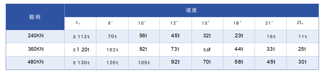 防爆特殊型鉛酸蓄電池齒軌卡軌車(永磁變頻一體機(jī))負(fù)載對(duì)照表(單位:t)