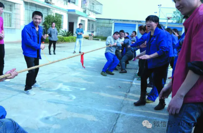 隨著一聲響亮的哨聲劃破天際,第一個(gè)比賽項(xiàng)目拔河比賽開始了,只見兩邊參賽隊(duì)員們迅速調(diào)整好自己的隊(duì)形,雙手緊緊的握住麻繩,使出全身力氣往自己的方向拽繩子,雙方隊(duì)員們一個(gè)個(gè)臉都憋得通紅。一旁的拉拉隊(duì)員熱情的高喊著“1、2加油!1、2加油!”聲音震耳欲聾、此起彼伏。經(jīng)過(guò)幾輪的角逐,最后“機(jī)加班組”獲得了本次拔河比賽的冠軍。